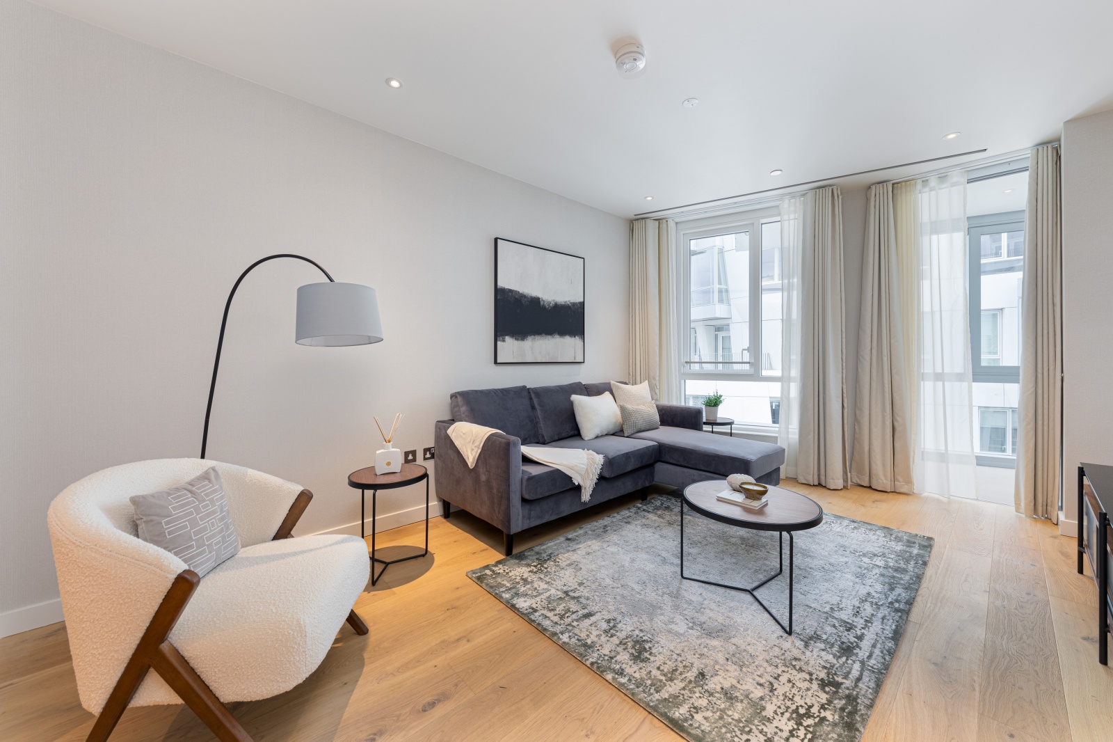A modern 2-bedroom apartment situated on the 11th floor of Wilshire House within the Battersea Power Station development.