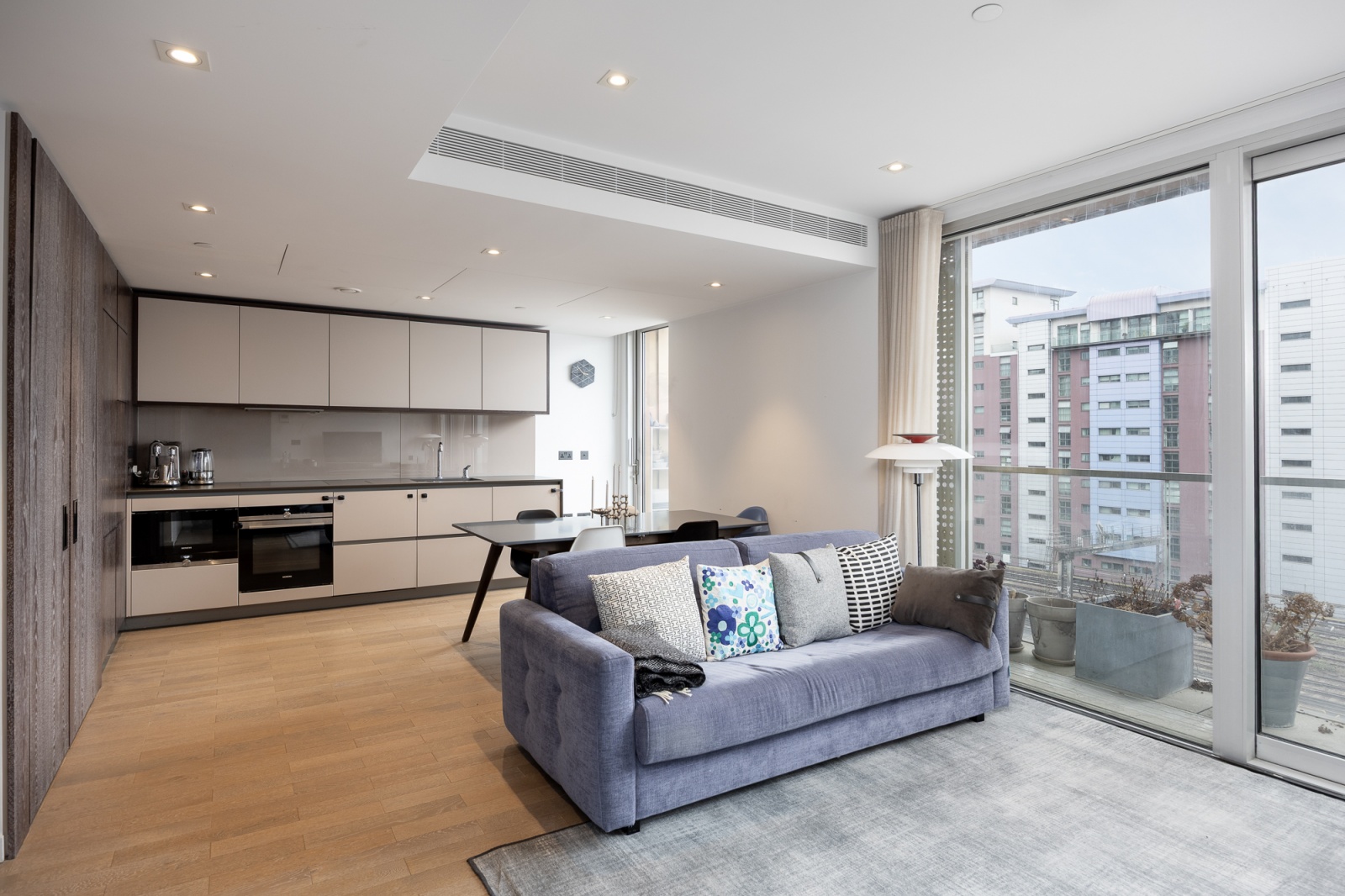The apartment is situated in the heart of Battersea’s buzzing neighbourhood, with 450m of river frontage, a riverside park, and dozens of shops, restaurants, bars and leisure activities. It is also well connected with Battersea’s brand new tube station less than a 5-minute walk away allowing access to the west end and the city within 15 minutes.
