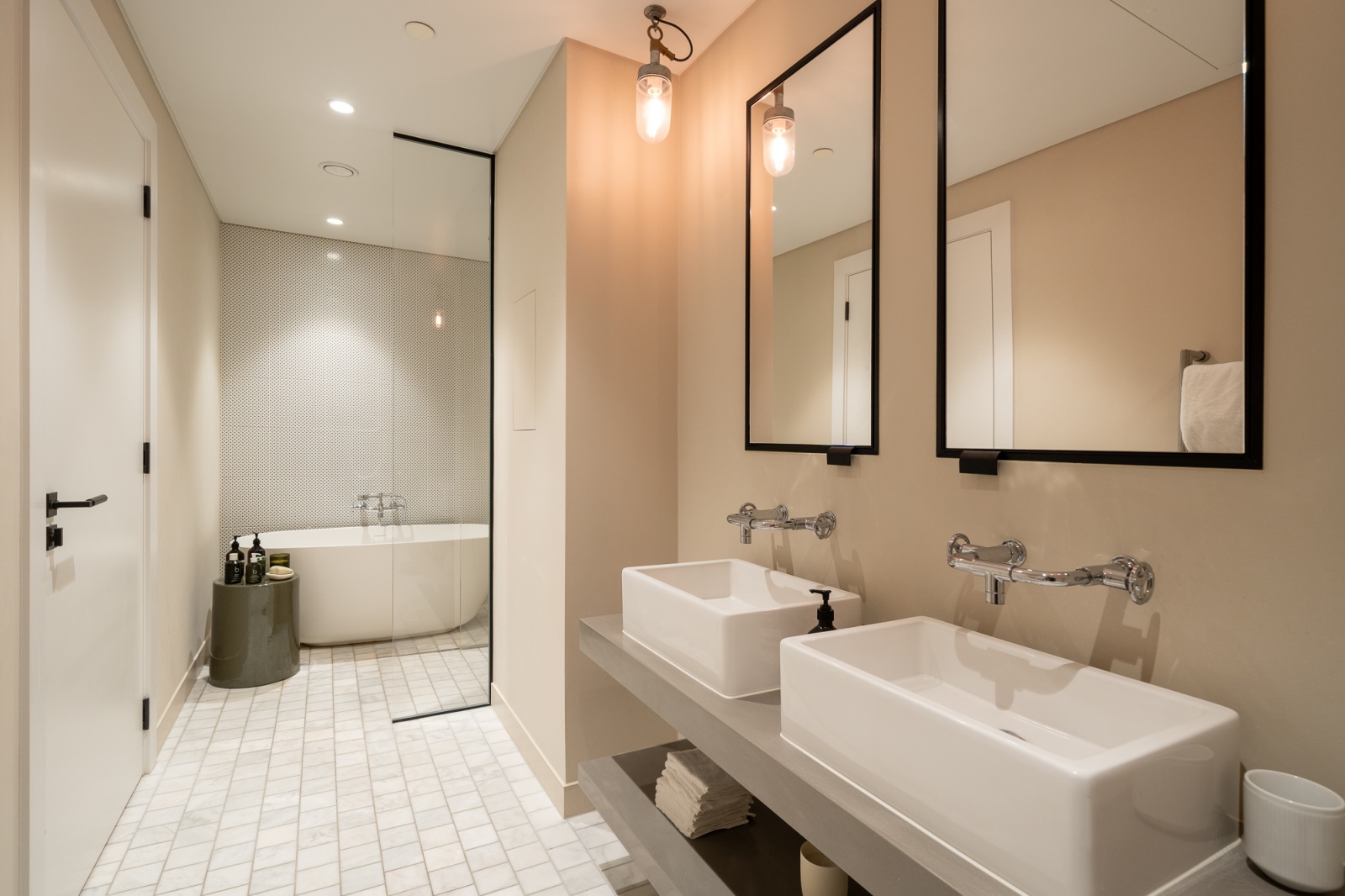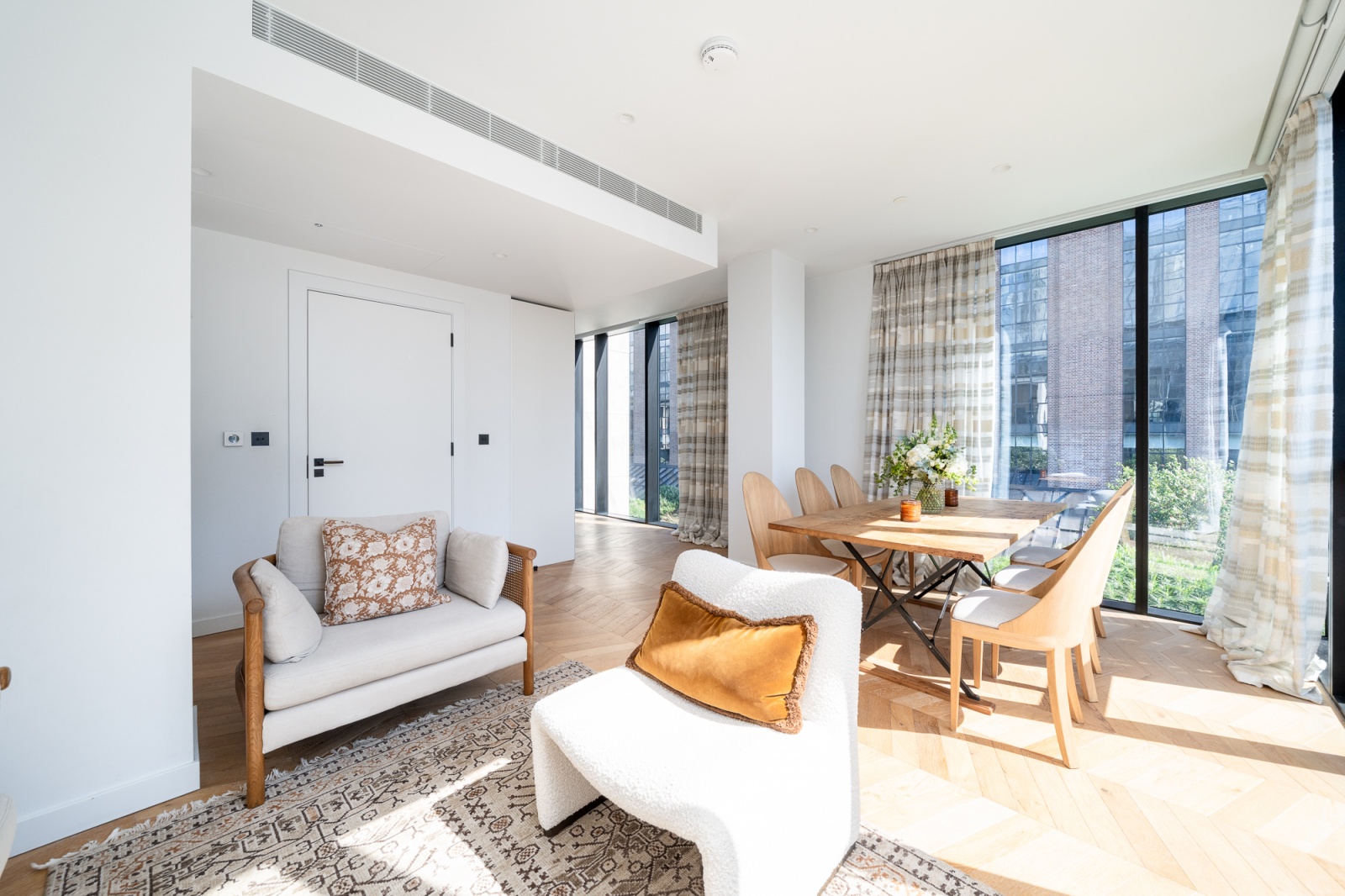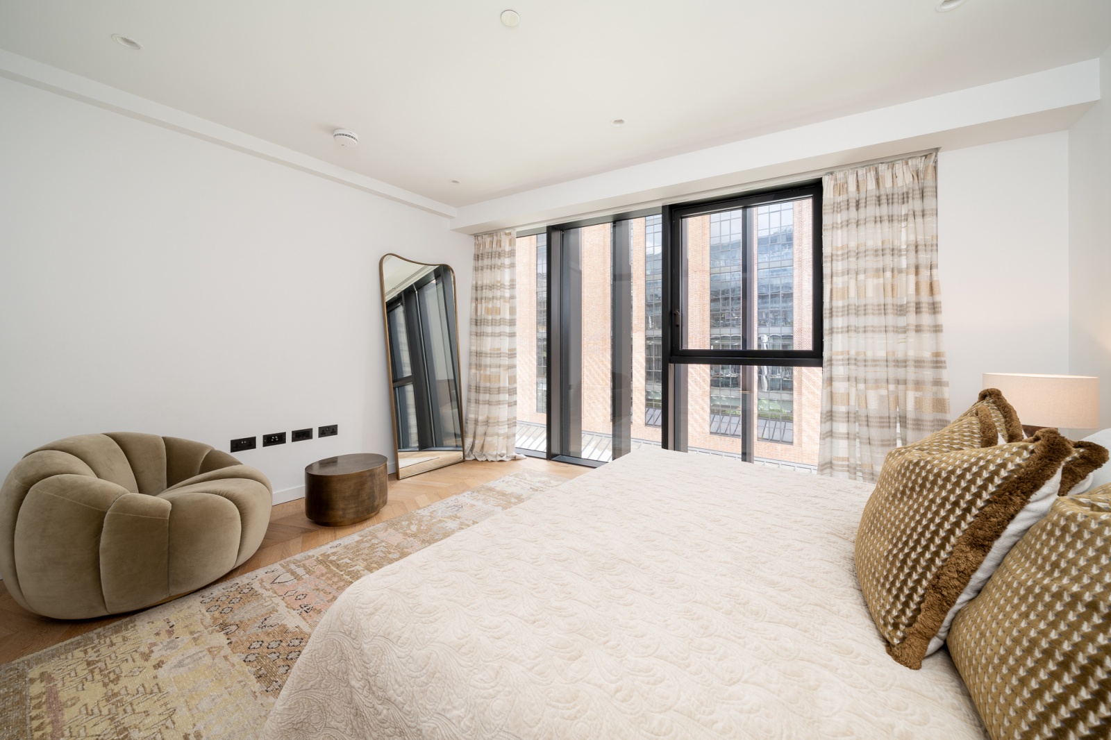 Its unique location on the corner of the building means it faces both east and south so is flooded with natural light all day, retaining privacy while also affording impressive views of the surrounding Norman Foster and Frank Gehry buildings.