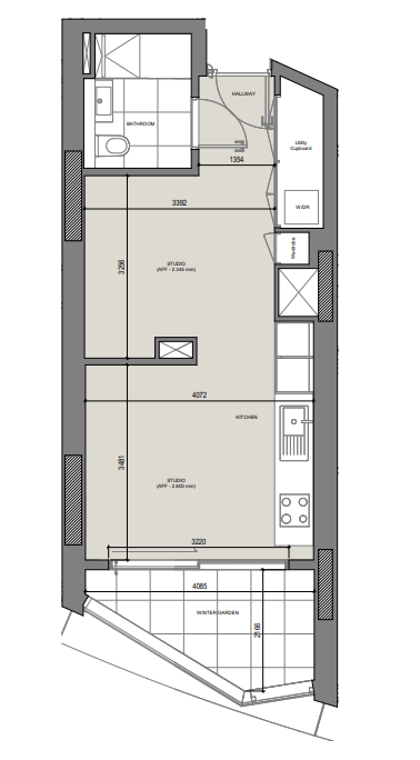 This spacious apartment offers 402 sq ft of modern accommodation, comprising of a bright and airy open plan kitchen and living area with integrated Siemens appliances which leads out onto the winter garden offering 66 sq ft of extra entertaining space, a good sized bedroom area and modern bathroom.