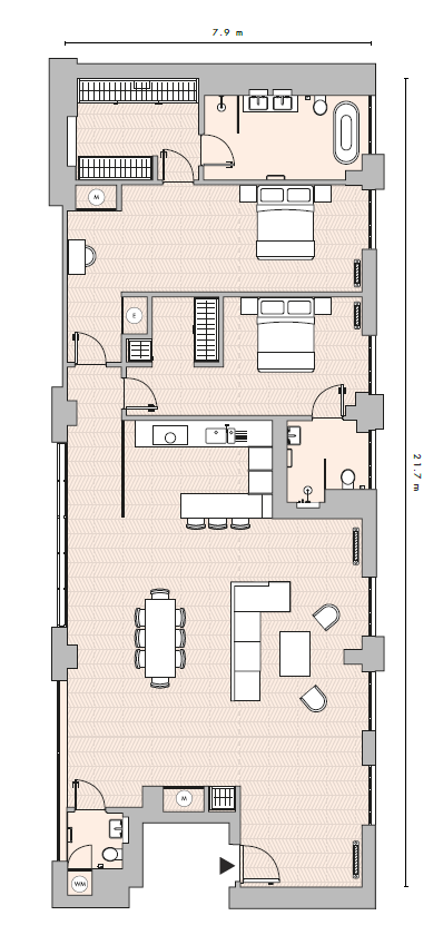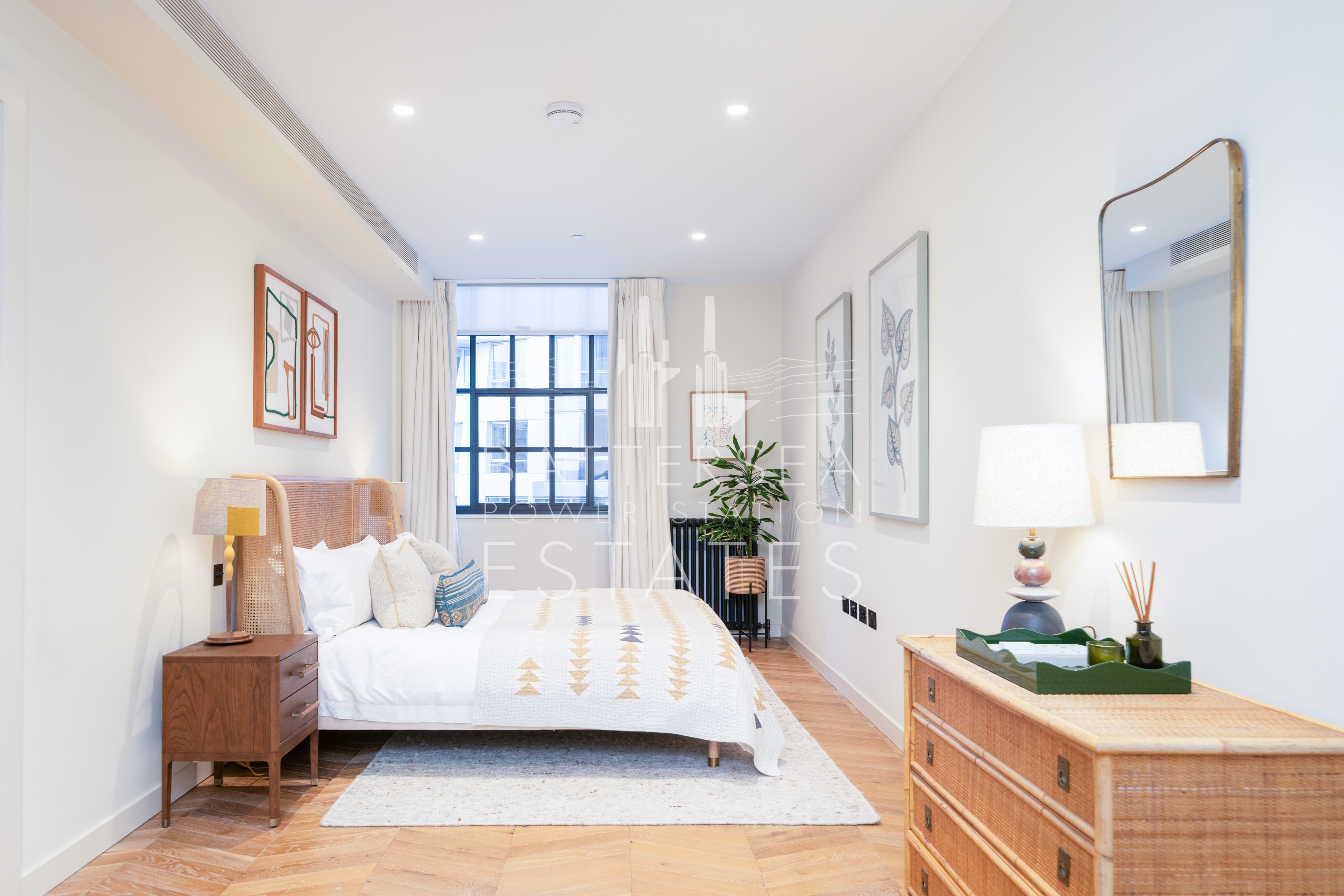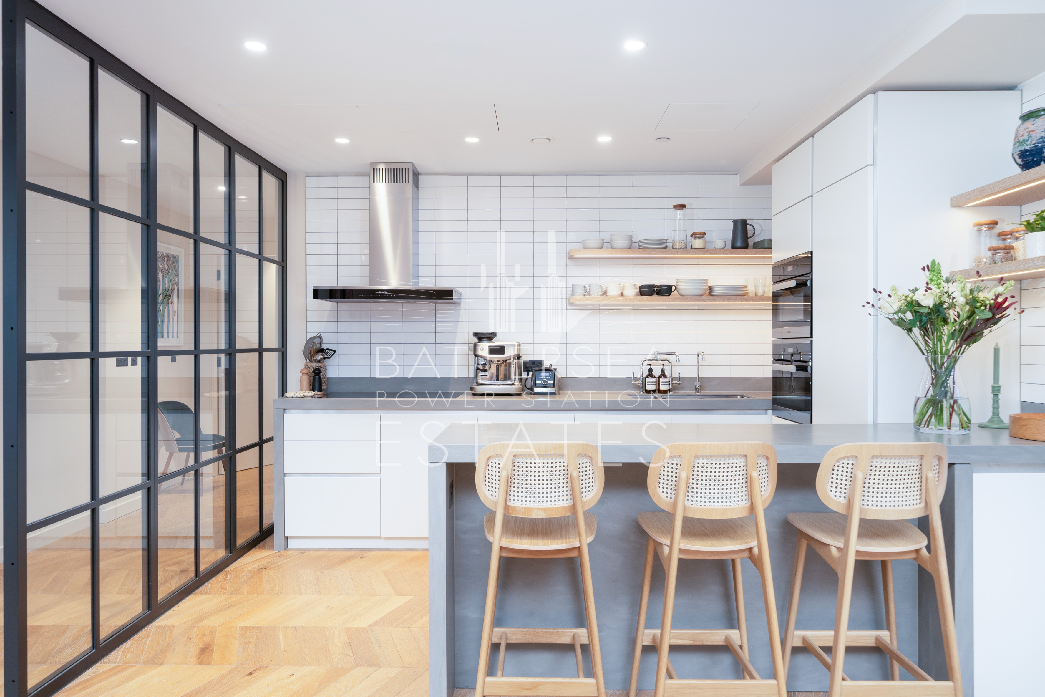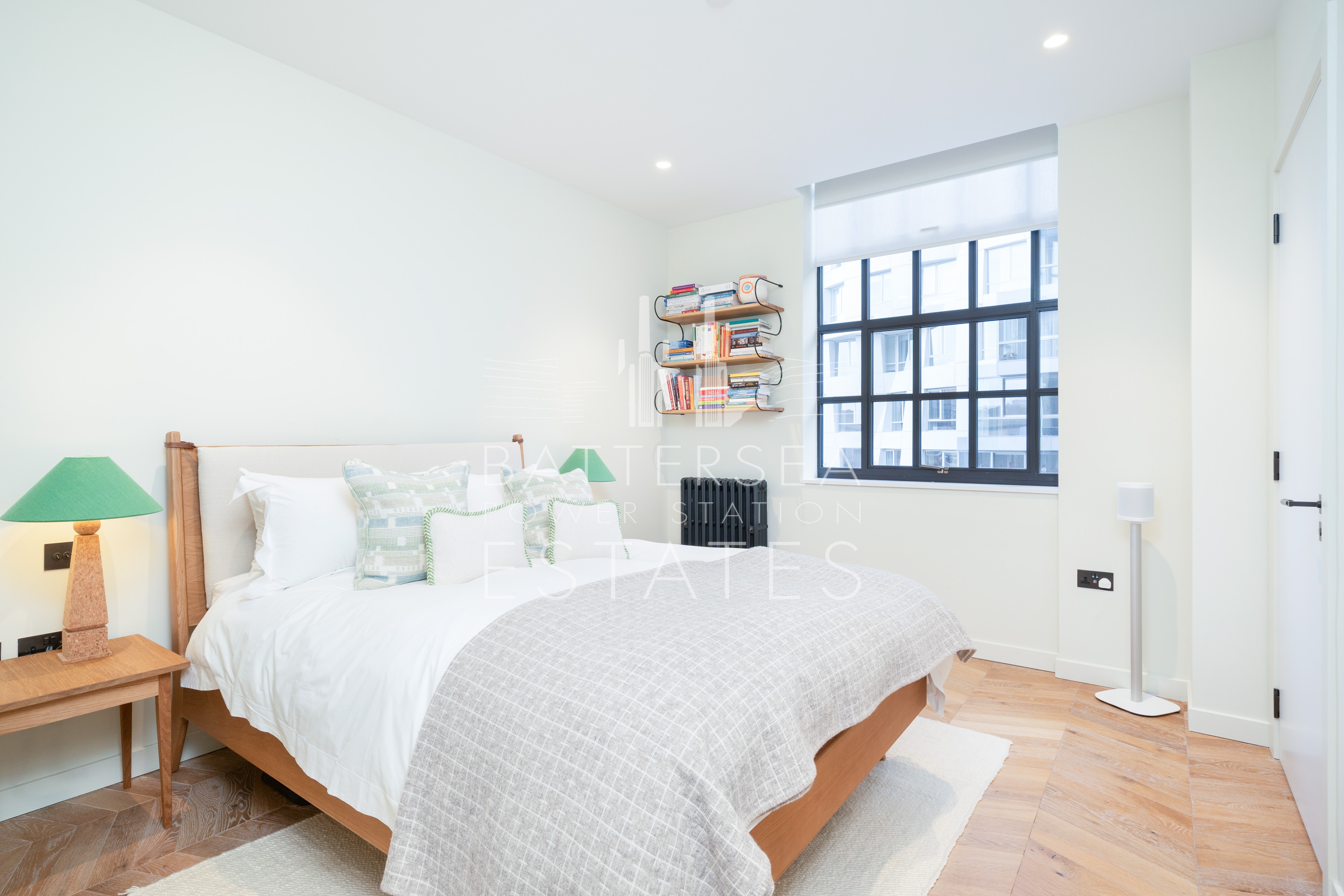 This apartment offers two large ensuite bedrooms as well as a guest w/c. Its south aspect allows plenty of natural light to flood through the large windows. Offering exposed brick interiors, crittall window's and finished to an exacting standard with wood flooring throughout, this apartment has a heating and cooling system in the living room and bedrooms and underfloor heating in the bathrooms. Further benefits include exclusive access to the apartment via the Boiler House Concierge.